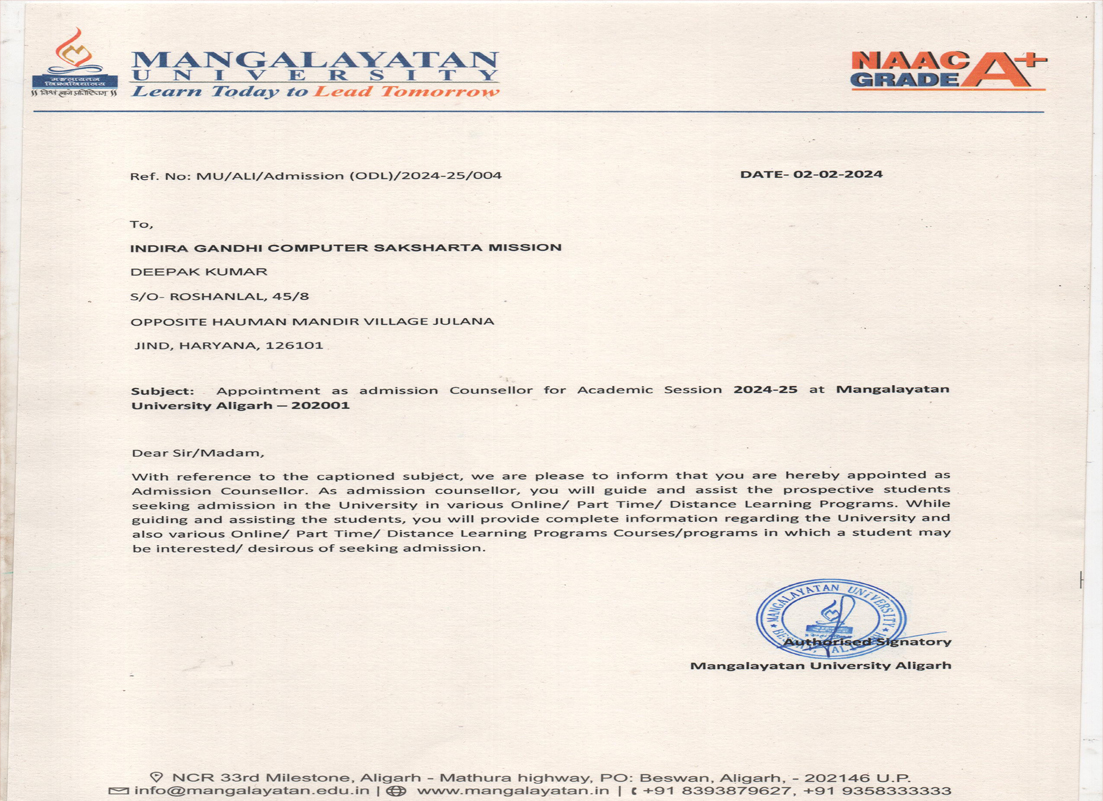 INDIRA GANDHI COMPUTER SAKSHARTA MISSION